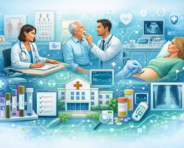 Especialidades médicas, exames e gestão